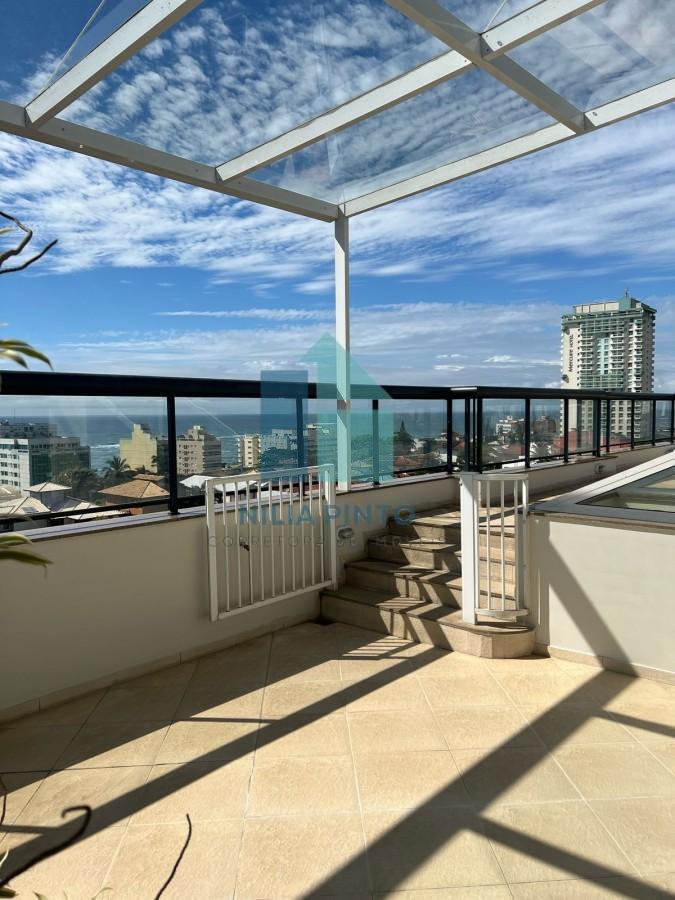 Cobertura à venda na Estrada da Cancela Preta com 360m², distribuída em dois andares. No piso inferior, conta com 3 quartos (2 suítes, uma com closet e varanda), sala em dois ambientes, cozinha planejada com fogão, despensa, área de serviço, suíte para funcionário, roupeiro no corredor e varanda. No andar superior, há mais uma suíte, sala com dois ambientes, banheiro social, área gourmet com churrasqueira, cozinha de apoio, piscina e sauna. Garagem coberta para 3 carros com portão eletrônico, além de quarto de apoio no térreo. Condomínio com elevador, portaria virtual 24h, salão de festas, piscina e campo de futebol. Valor: R$ 2.199.000,00 | IPTU: R$ 2.748,37 | Condomínio: R$ 1.460. Agende sua visita.